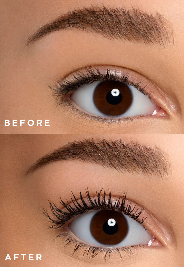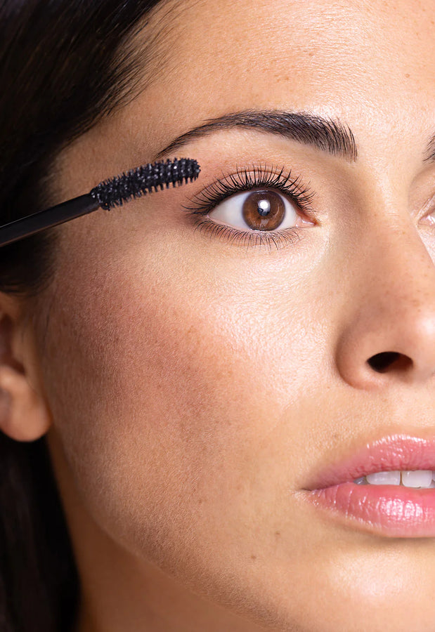 Start at the base of the lash and pull the VOLUME MASCARA brush from root to tip to instantly achieve volume.